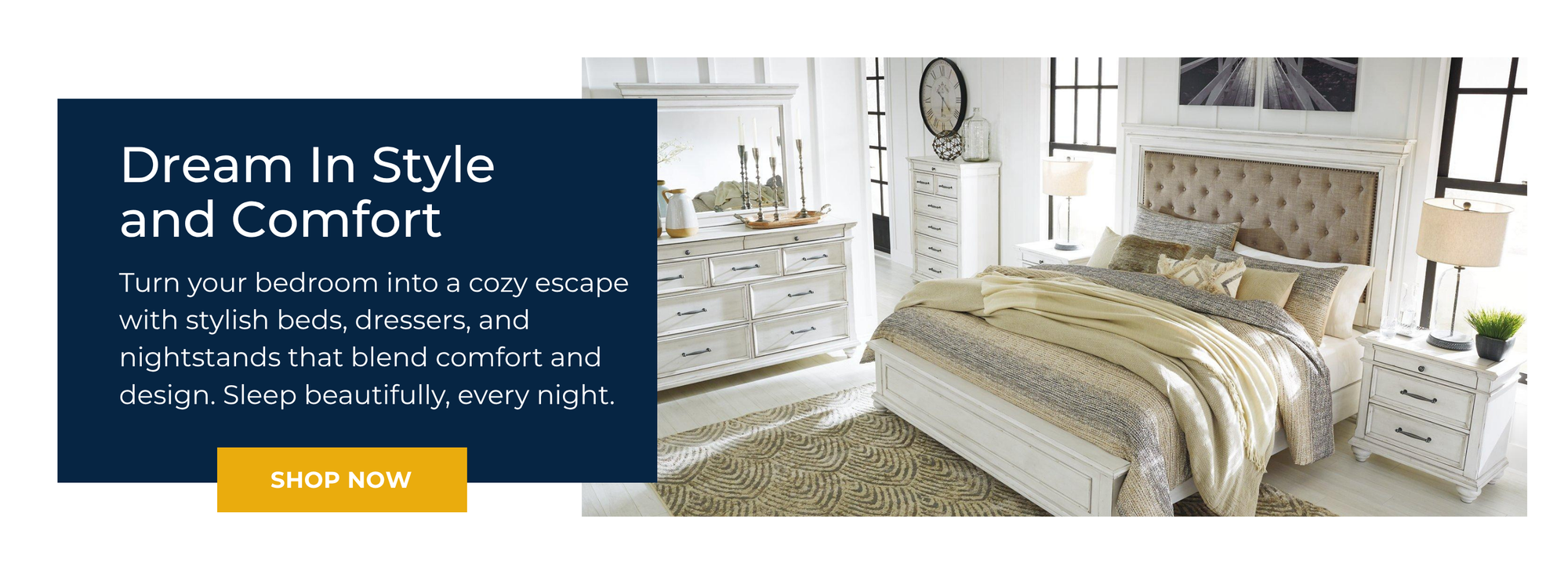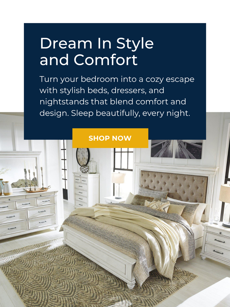 View full detailsAdd a touch of romance with this bedroom package. Its antiqued white painted finish is the picture of easy elegance. From serpentine-shaped silhoue...