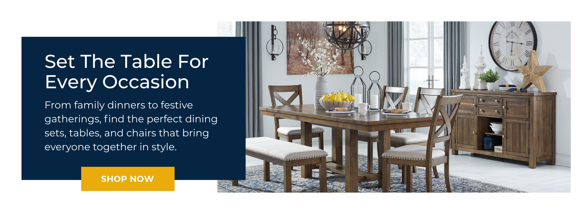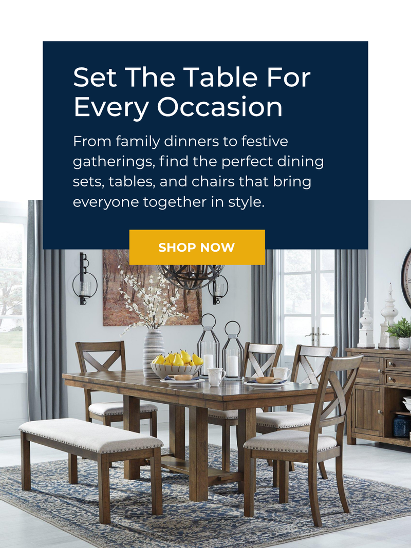 View full detailsThis dining package sits comfortably at the intersection of modern lodge and farmhouse aesthetics. Your warm and welcoming disposition is reflected...