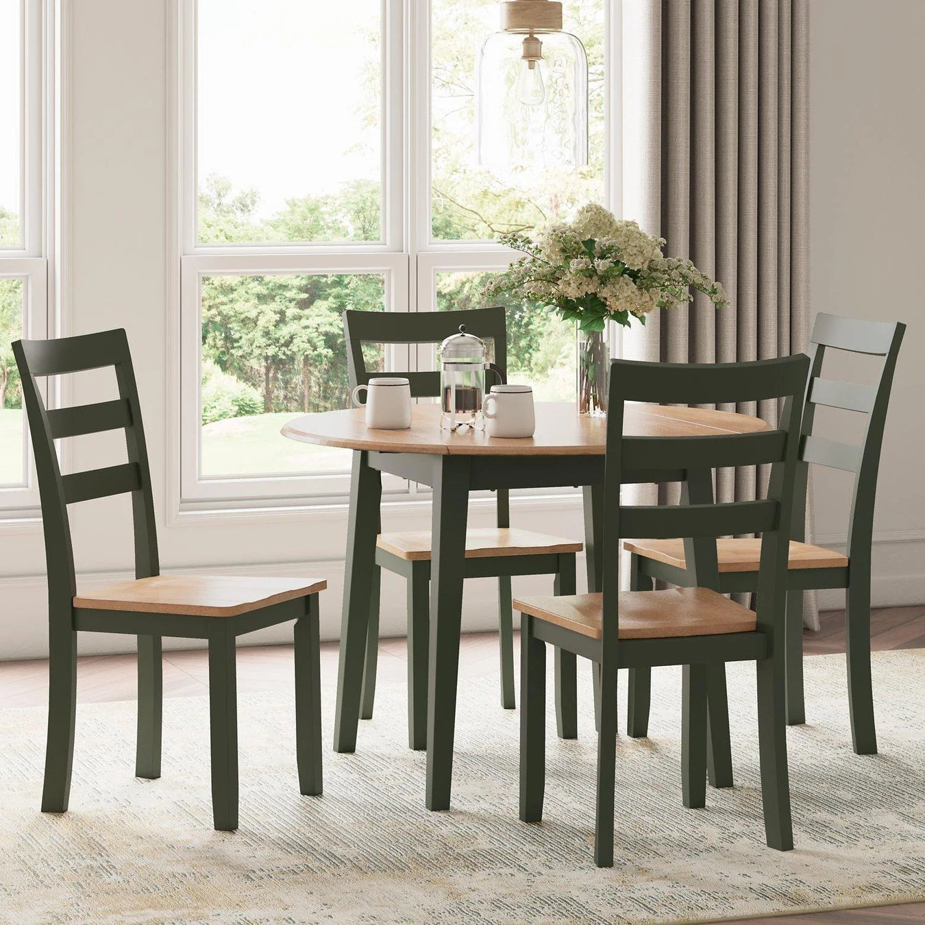 View full detailsThis versatile 5-piece dining room set incorporates decidedly rustic flair. The table’s two drop leaves provide just enough table space to accommod...